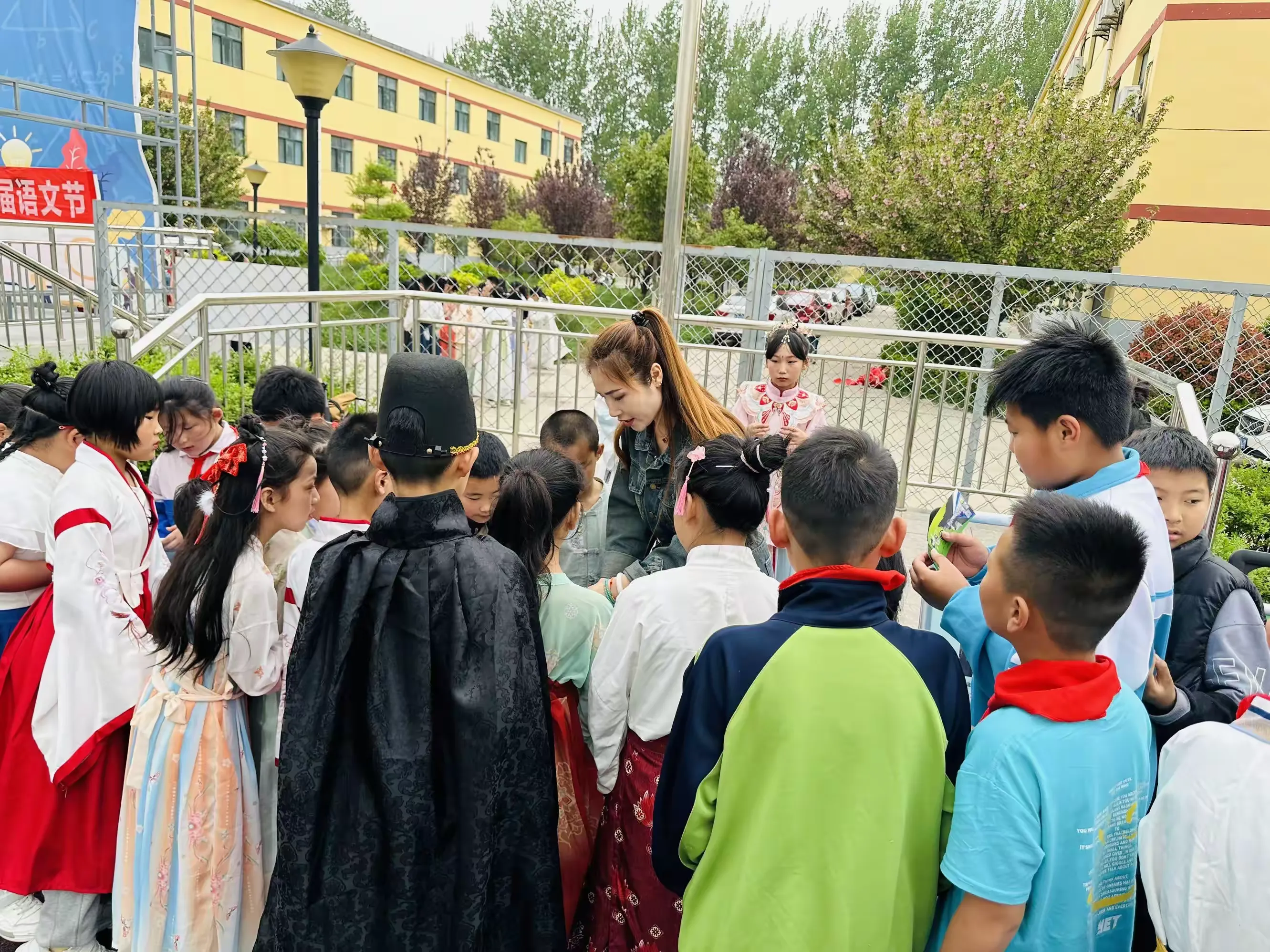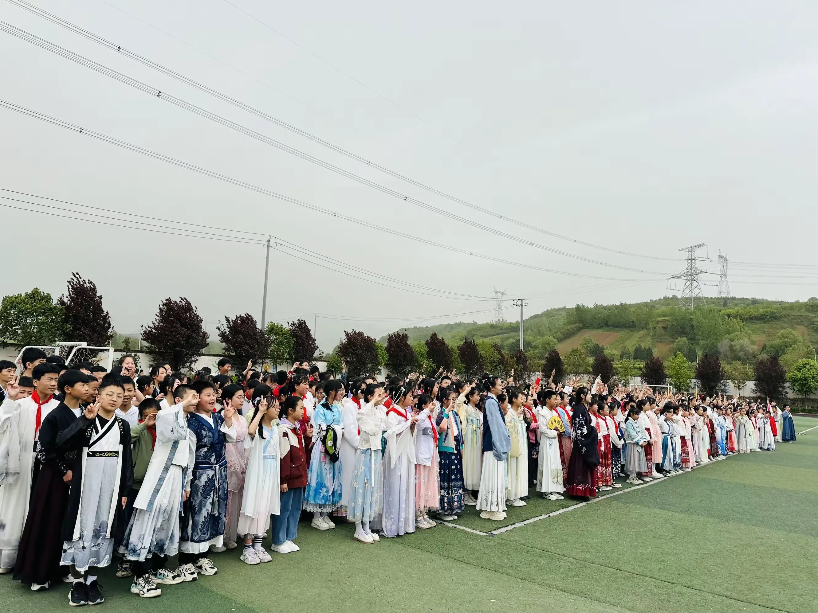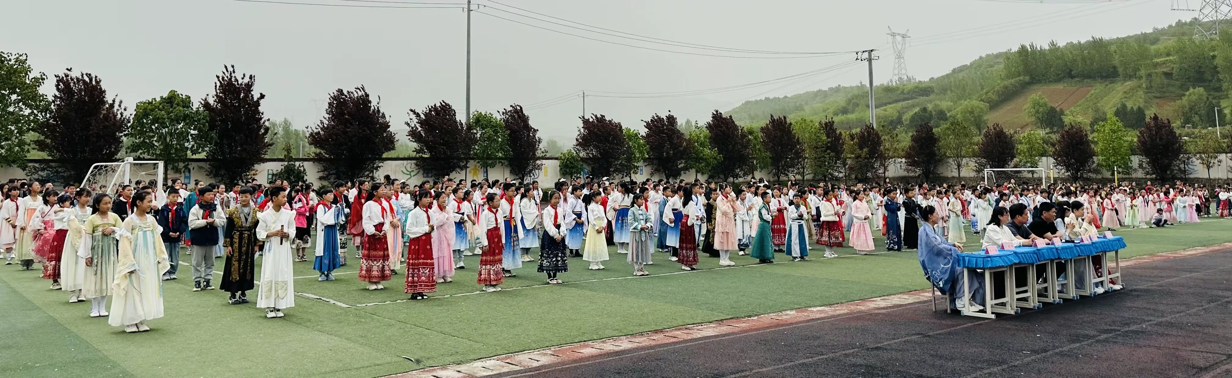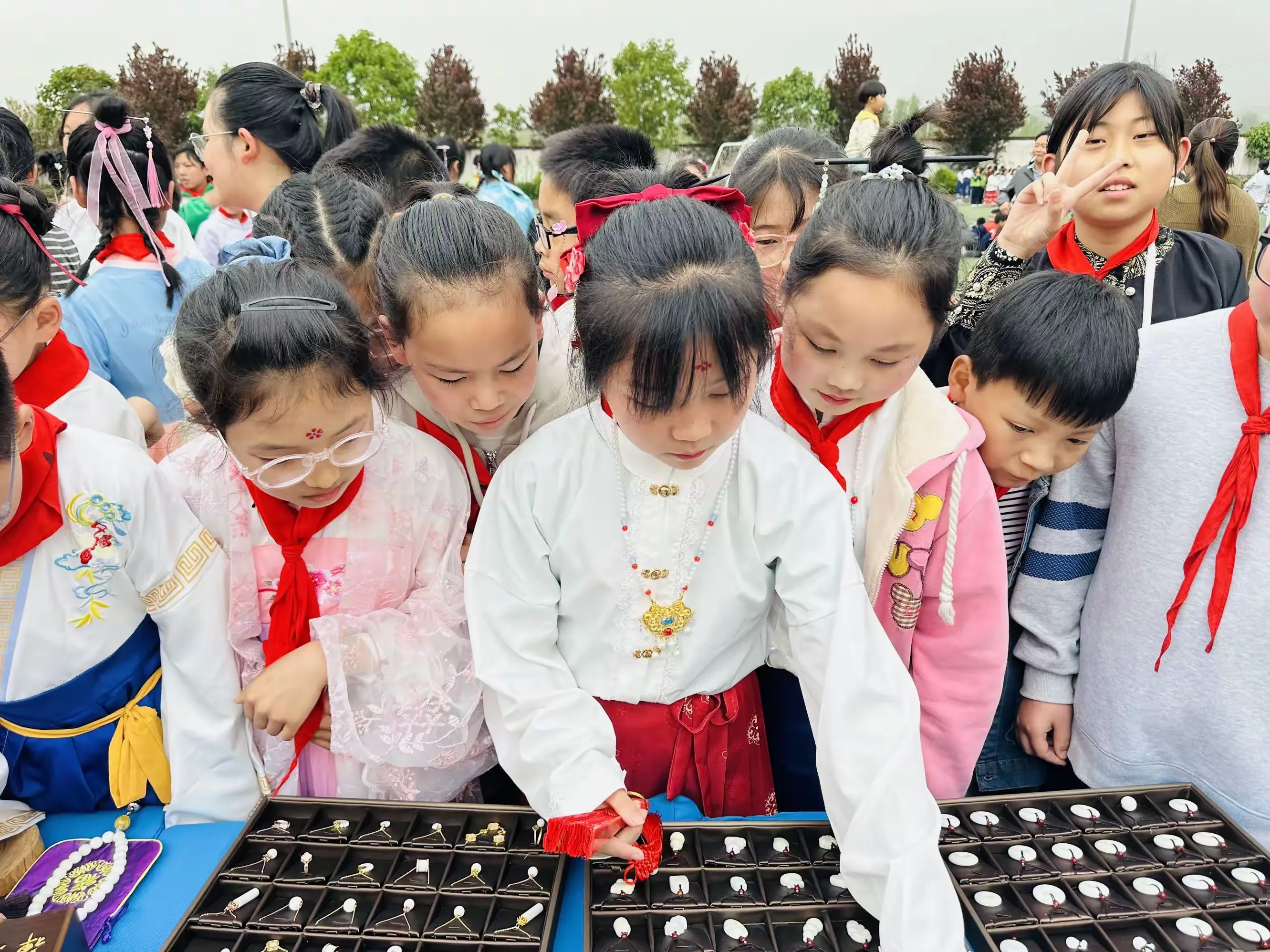 同学们在老师的组织下,穿着汉服,积极整理好队形,准备开始今天精彩丰富的活动,感受汉服文化与玉文化的碰撞。