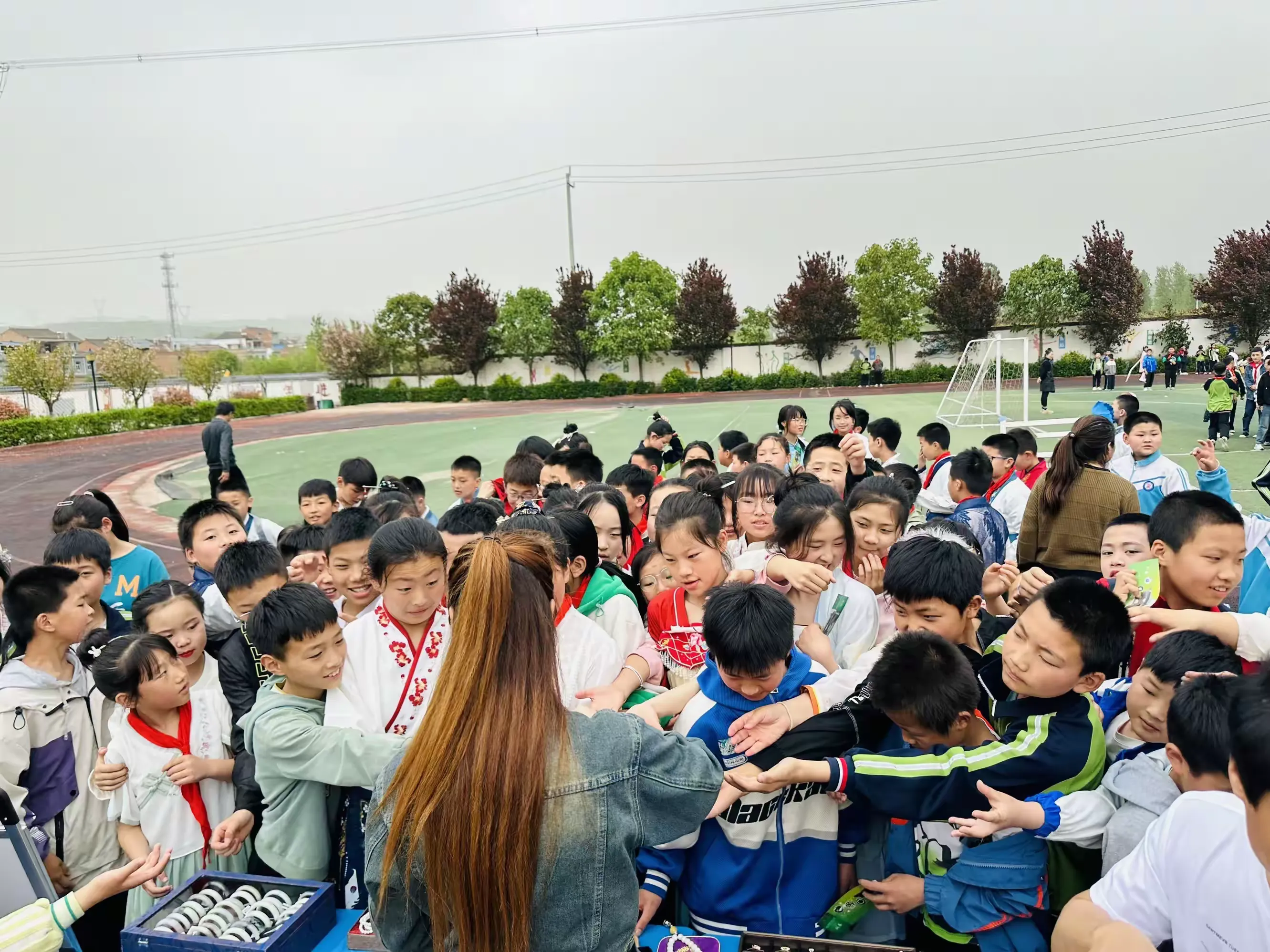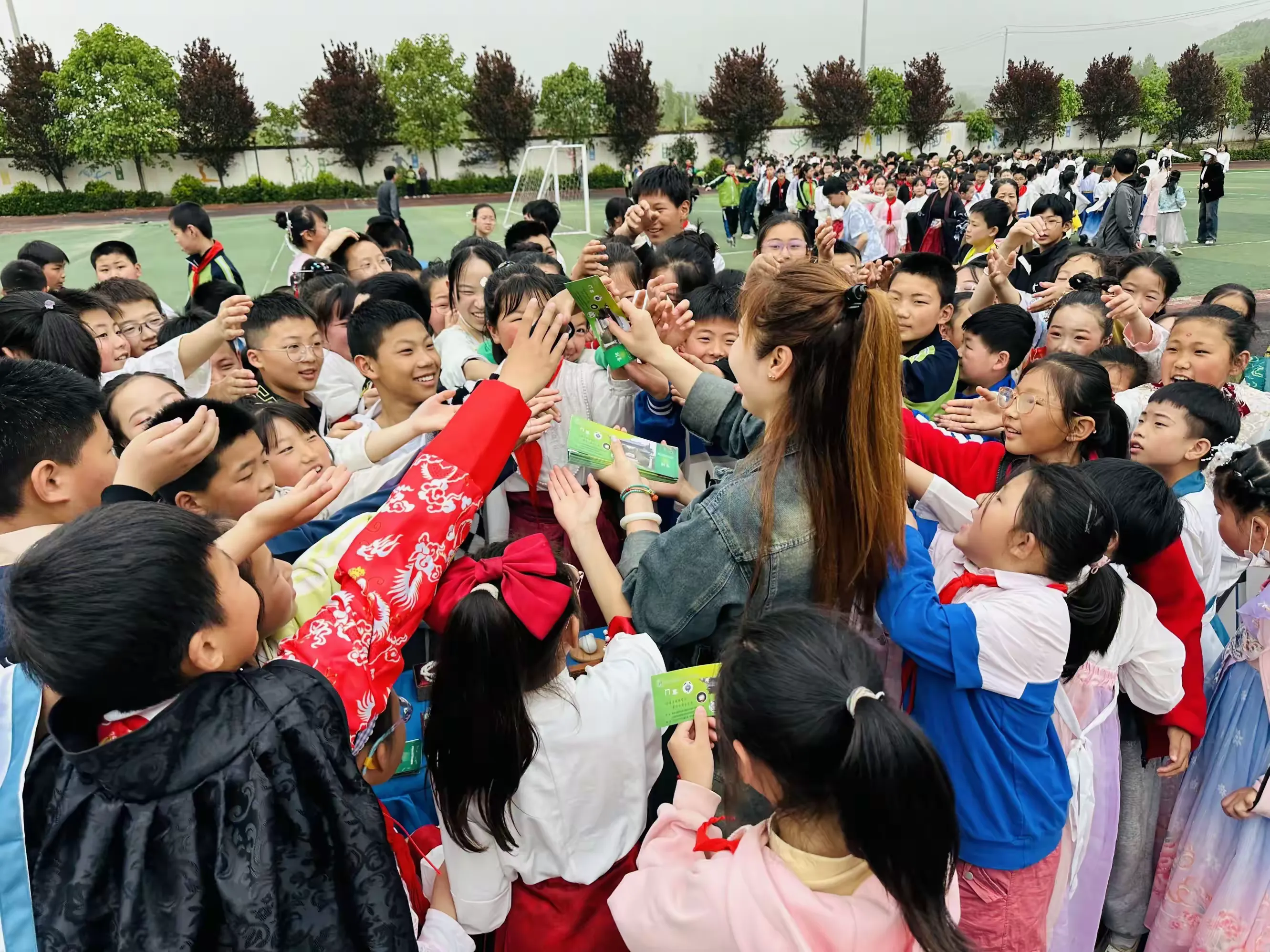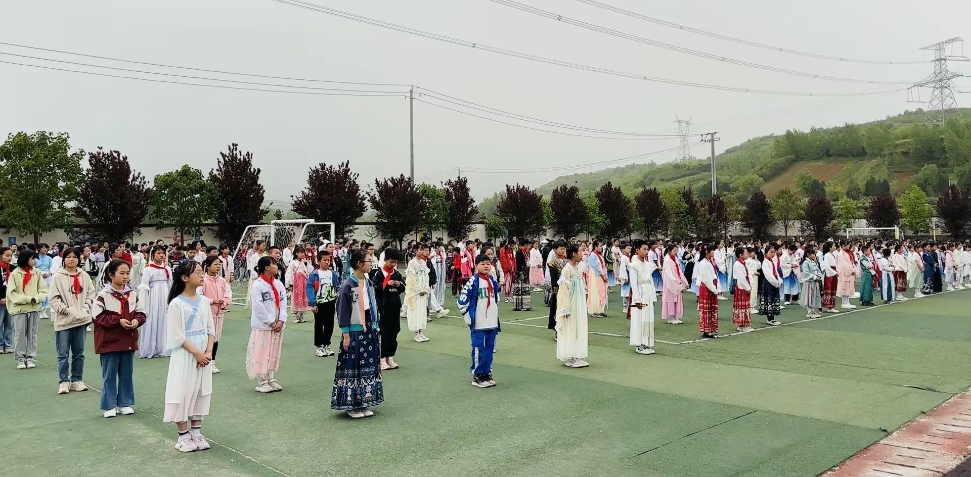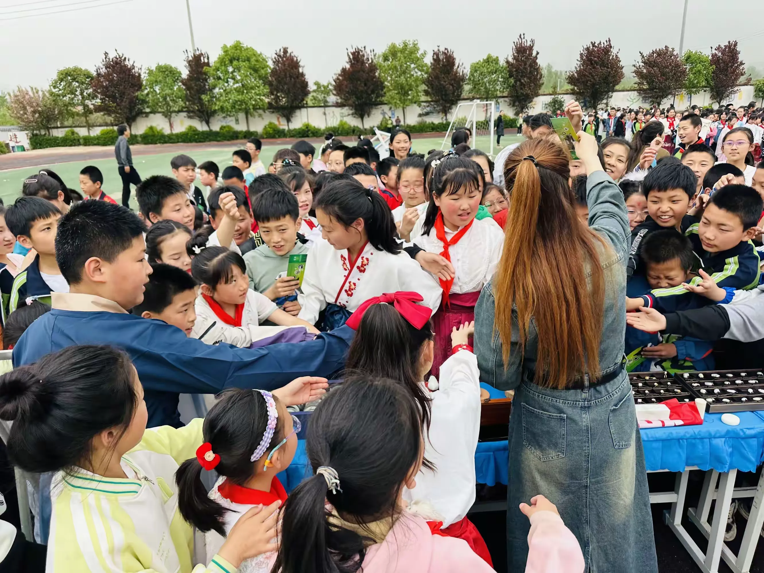 同学们在老师的组织下,穿着汉服,积极整理好队形,准备开始今天精彩丰富的活动,感受汉服文化与玉文化的碰撞。