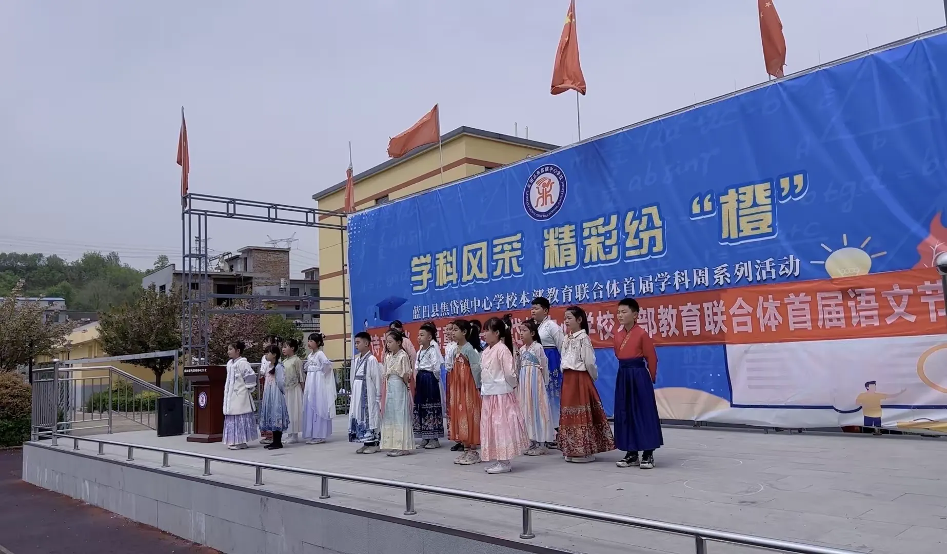 孩子们进行了精彩的表演,演出融合了汉服文化、玉文化以及古诗词文化元素,“李白”、“王维”纷纷上场,吟诗作对,谈笑古今,台下掌声不断。