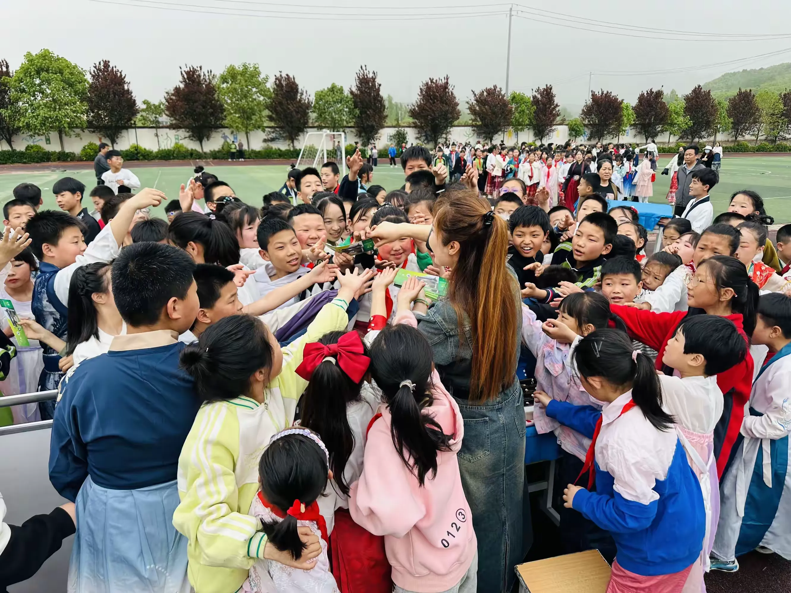 上午10点30分,在校领导的大力支持下,我们来到焦岱镇中心学校操场,开始了今天活动的布置。